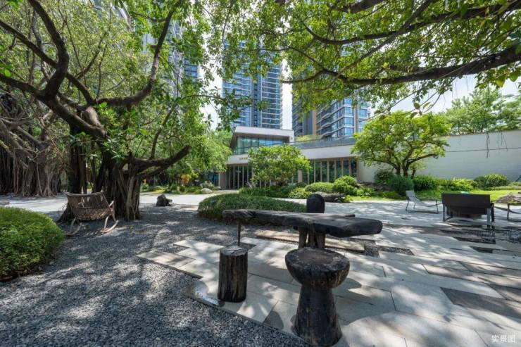 留住精神原乡,尊重土地文化。社区红线内有6棵百年古榕树,联投·文津府尊重岭南在地文化,牺牲了一栋楼特意将其原址保护,并以此打造“前庭”——榕下广场,最大程度实现生活与自然的亲密共融。