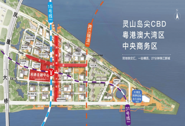 规划中的地铁15号线与31号线在灵山岛站换乘,两个出入口直接设于利通金融中心项目红线内,可实现与地铁的无缝衔接。其中15号线将与地铁18号线在横沥站接驳,灵山站与横沥站仅一站之隔,30分钟内直达广州市区。