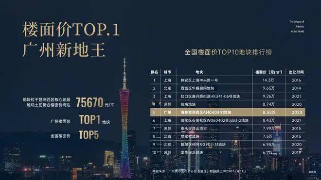 以楼面地价75670元/㎡,刷新广州地价记录,成功跻身广州楼面价TOP1、全国TOP5