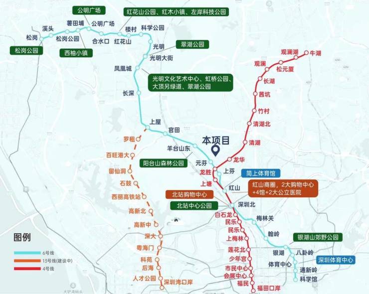 未来3站与地铁13号线(规划中)接驳,将串联留仙洞总部基地/南山科技园等深圳最牛的核心商务区以及连接深圳北站/西丽综合交通枢纽两大交通枢纽;