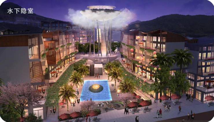 小镇通过积木岛、梦想城堡、云端、红色之恋、蓝色之恋、三位树屋、水下隐室、倒梦空间八大奇异建筑,汇聚顶尖品牌,打造科技馆、儿童乐园、婚恋主题馆、心灵修养馆等多元业态于一体的商业美学空间,是集网红打卡与商业场景并存的心地标。
