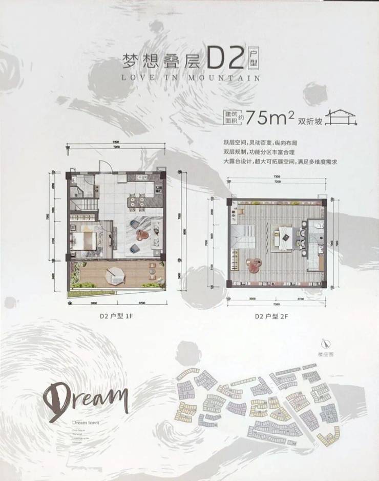 爱上山·梦想小镇,以约55-75㎡空中洋房、约76-95㎡复式洋房产品为主,民水民电、可商可宿、可创业的全能空间,打造全系阳台赠送度假恒产。业主购买房子后,闲置时,可以享受物业一键托管,装修、物管、返租全程无忧,实现房子自身的收益价值,增加闲置资产收入,完成资产溢价。