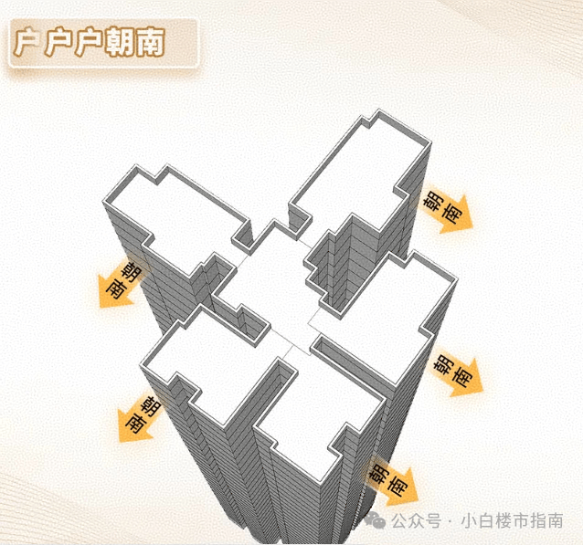 2.户户全南向。至少四开间朝南,每户都能享受日照,户户对流通透,不论采光,还是通风,都达到优越级。