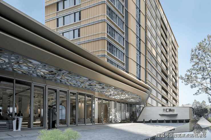 公建化立面,包括全景式系统玻璃门窗、铝板、陶板幕墙系统还有圆角造型。