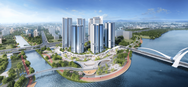 三面临水,岛居湖中,纵览最美中轴滨江水景。
