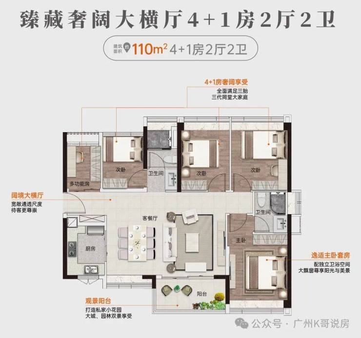 全面满足三胎/三代同堂大家庭,极致面积做五房,比同户型价格省200万
