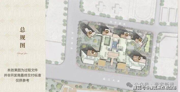 全盘仅规划建设6栋35-50层高的超高层江景住宅,整个项目采用前高后低(南低北高)的阶梯式半围合布局,使得每一户都能拥有南向望江的绝美景观。