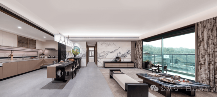 采用公建化立面设计,通过客厅的阔绰观景阳台和房间无柱全景观面飘窗台,视野开阔,实现0遮挡山景入户,与云山亲密接触。