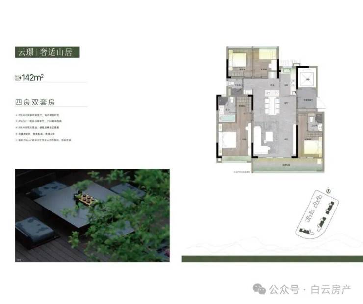 专梯专户山居环幕MAX平层,视野开阔,揽一线云山美景,低密居件环境舒适宜人,仅限319席。