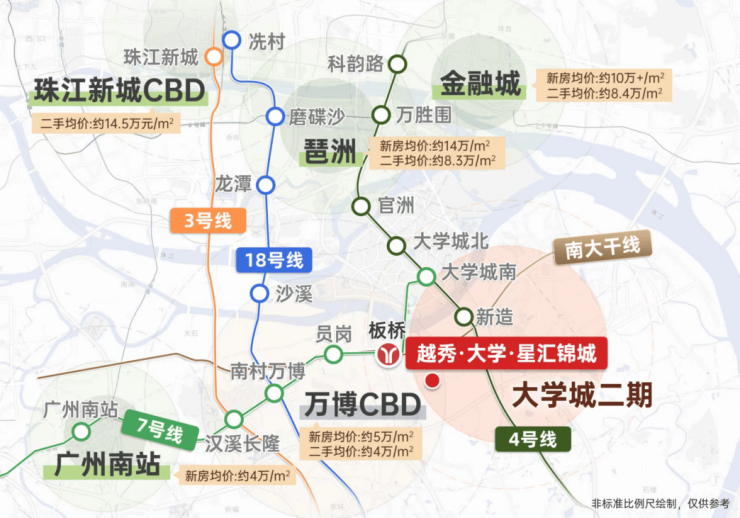 位置优势:紧邻南大干线与南沙港快速路,便于连接广州各主要商业区。大学城南板块,后期规划落地后,有较强人文氛围