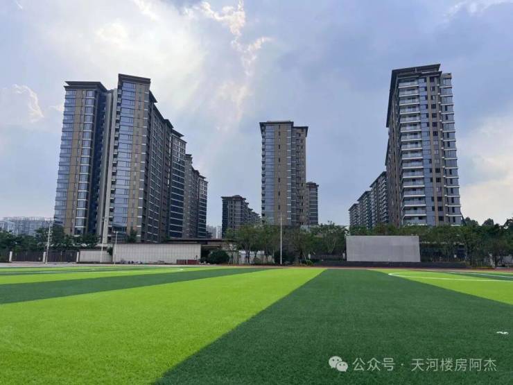 教育资源项目配建的广东实验中学天河学校,是九年一贯制公办学校(小学+初中)。几个客观事实:学校2025年9月已经开学,不是规划中。位置在小区内部,孩子上学不需要穿行市政道路。另外项目还配建了18班幼儿园。从幼儿园到初中都在步行范围内,对于有学龄儿童的家庭来说,确实能节省不少接送精力。