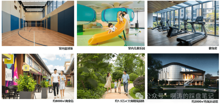 配套𝟮𝟰班建造标准小学和𝟭𝟴班建造标准幼儿园、约𝟯𝟬𝟬𝟬㎡运动会所(内有篮球场、瑜伽室、室内泳池、儿童游乐园、健身房等)、约𝟴𝟬𝟬𝟬㎡风情商业街区(含𝟮𝟬𝟬𝟬㎡生鲜超市)、约𝟭.𝟳万㎡健身场地、约𝟮𝟬𝟬𝟬㎡独立运动馆、社区健康管理中心、社区图书馆等,是区域优选的美好生活配套大盘。