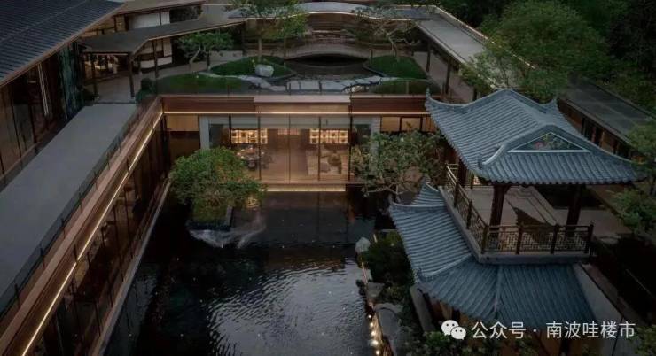 项目摒弃市面常见的围合式布局,以《千里江山图》的意境与岭南四大名园的风雅为底蕴,营筑立体化岭南园林。