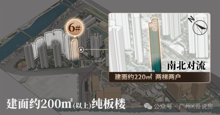 约220㎡大平层,户户四开间朝南,户户南北对流大方厅,户户两梯两户专属归家,户户双主套双阳台……