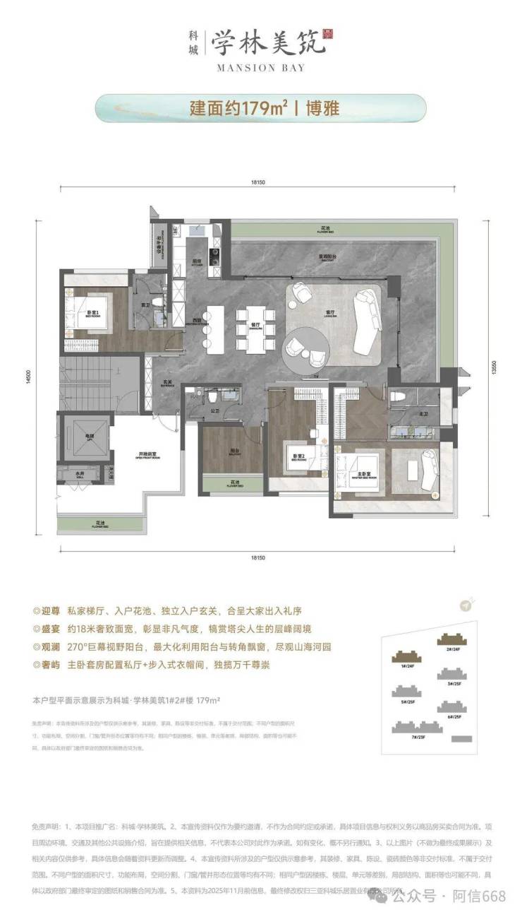 【产品面积】建面约124m²/143m²/179m²