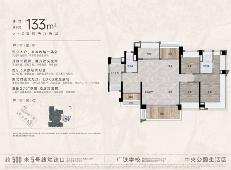 9栋,50层3梯6户,有70-73-88-93-133-138平户型;