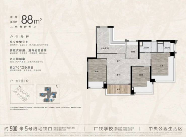 黄埔新城这次加推的是,中央公园组团的9/10栋,都是高得房率的新规产品,做到户户都有入户花园、洗手间厨房也都利用了飘窗,可以说更有性价比了。