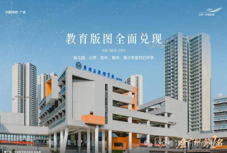 3、教育:万科黄埔新城规划建设11所学校,含6所幼儿园、2所小学、2所九年一贯制学校、1所高中,实现15年一站式教育。截止2024年9月,已经开学的学校一共有5所: