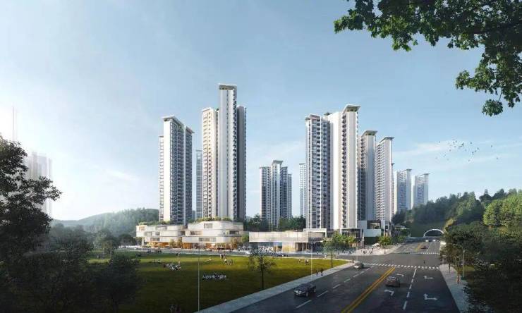 建筑群体高低错落,结合山体秩序。建筑外观形式简洁明快,符合现代人居的审美意识,充分体现现代岭南城市风貌特色。