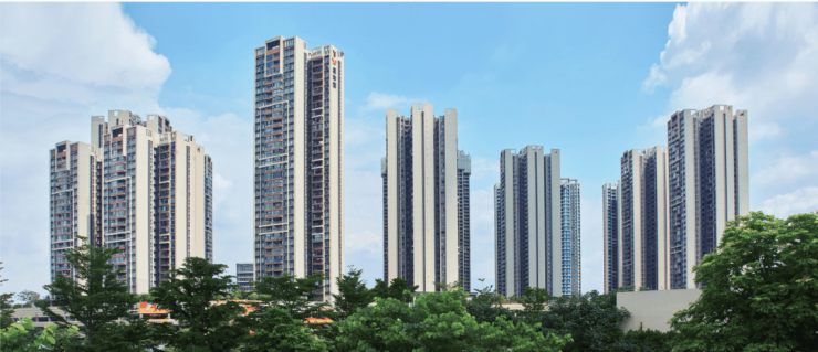 楼栋布局呈一字排布,实现人均园林最大化(绿化),以及法线错开视野通风采光一级棒