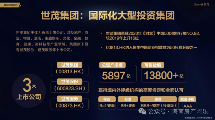 世茂集团是一家国际化、综合性大的型投资集团,经过三十多年的发展,集团布局全国100多个核心发展城市,涉及地产、商业、物管、酒店、主题娱乐、文化、金融、教育、健康、高科技等产业领域,形成了多元化业务并举的“可持续发展生态圈”。