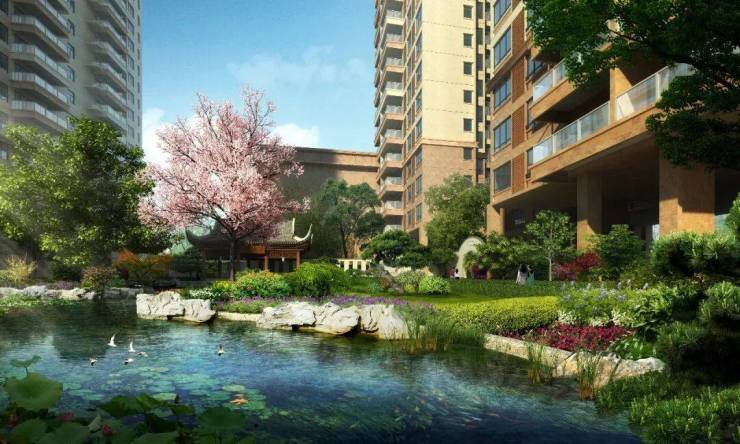 写意是东方特有的美学传统,重在表达精神——文以载道,诗以言志,画以传神。珠江愉景雅苑,1万㎡中心园林,将景物文学化和心灵化,筑石为台,环水为池,山水为墨,书写天地。“一池三亭”造园手法为业主留一席灵思静心地、风雅修心场。