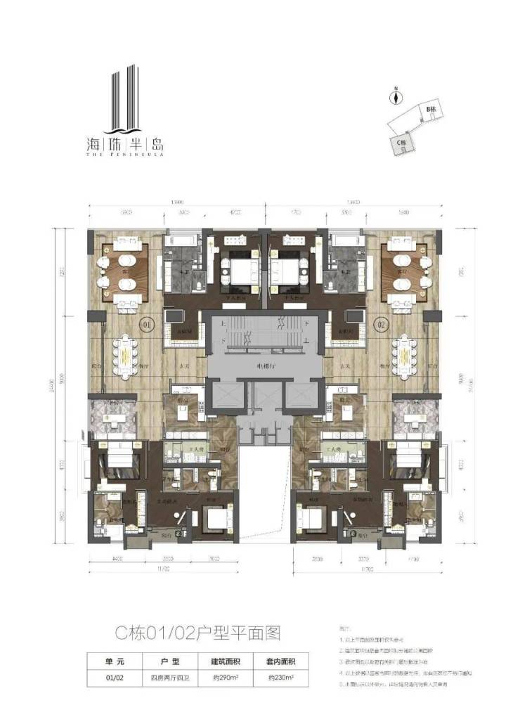 户型展示290平方米四房(四主套)两厅+工人房(也有独立卫生 间)