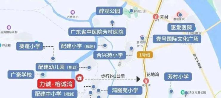 距离楼盘600米左右有个远期规划的25号线的汾水站,后续就可以一个站就到花地湾,大大减少了通行时间。