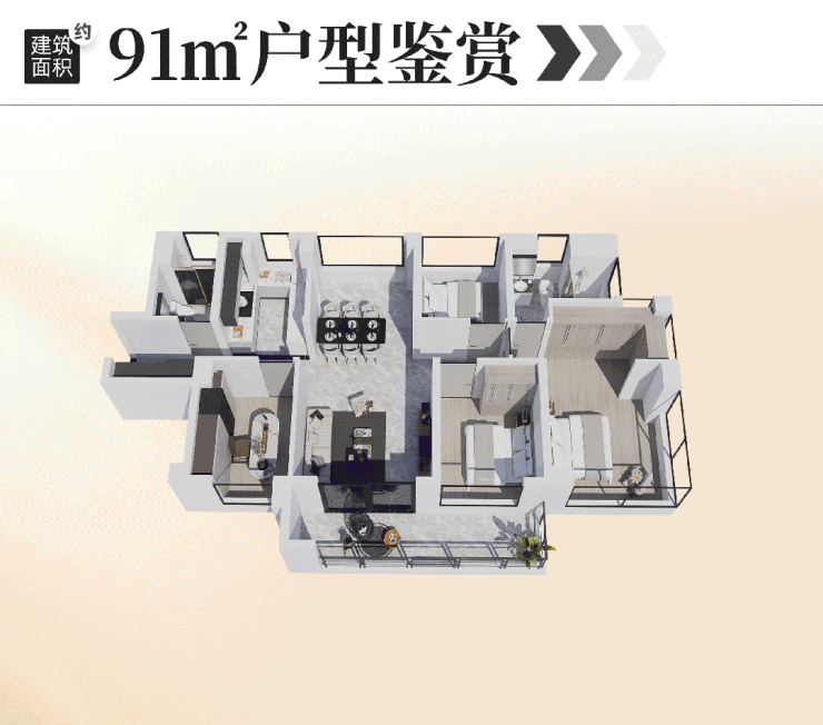 产品线覆盖建面约76㎡、78㎡、88㎡、91㎡的三至四房,全系朝南、全双卫配置,尤其76㎡和78㎡的小三房,算得上市场上罕见的“全南向+主套房+双卫”组合,实际功能堆得相当紧凑。