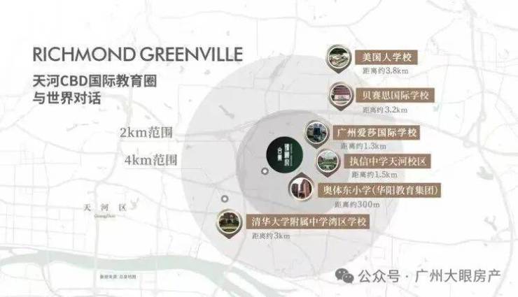 中学:执信中学天河校区、清华大学附属中学湾区学校、华师附外美式高中、广州奥林匹克中学、华南师范大学附属外国语学校