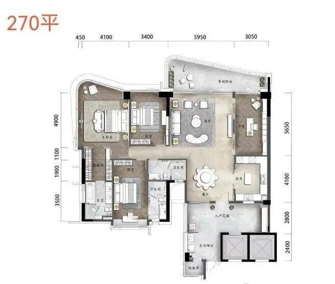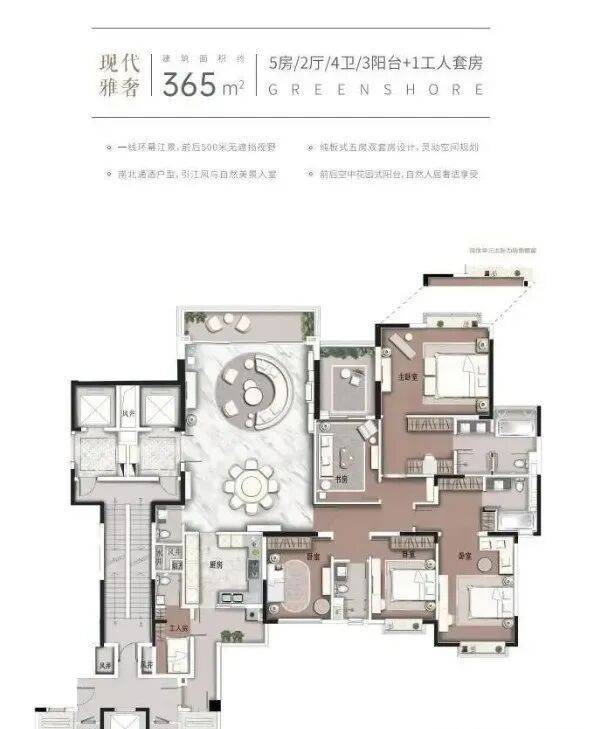 约365㎡5房双套房|2厅|4卫|3阳台+1工人套房