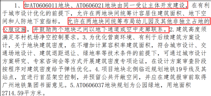 “≤ 2.1的容积率+建筑高度必须满足岑村机场净空控制+新规配建要求”。