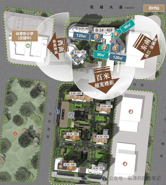 ◎容积率:综合容积率3.33,南地块约3.1,北地块约3.8