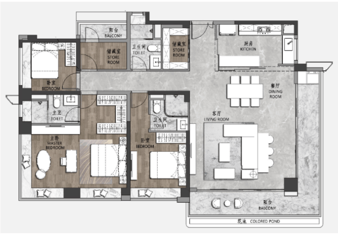 177㎡南北通透:通透四空间三卫设计