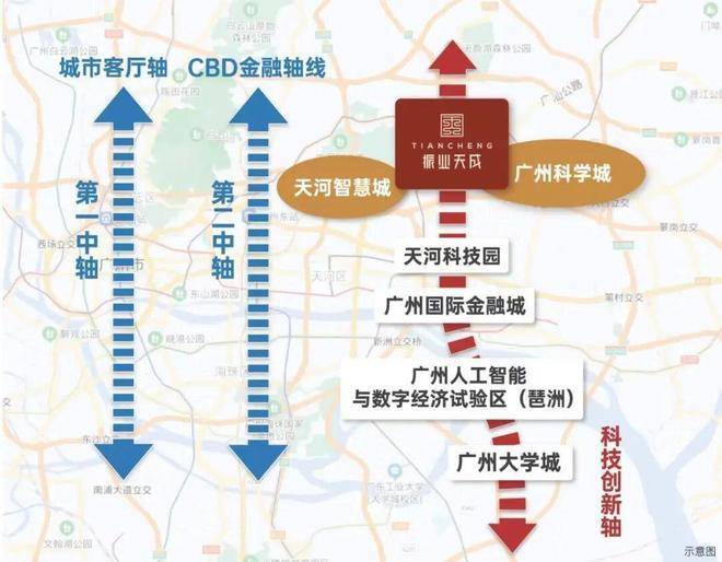 项目位于广州第三发展中轴线“科技创新轴”,天河智慧城和黄埔科学城双城交汇之地,汇聚了金融总部、人工智能、数字经济、智能制造,是一条全新的“科技创新中轴”。