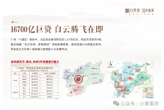 区域发展 广州白云区正处于腾飞时期,十四五规划总投资高达1.67万亿元,正逐步成为广州标志性的高端中央商务区。白云新城汇聚航空、生物医药等多类高端产业,设计之都集聚大湾区创新设计品牌,前景广阔。