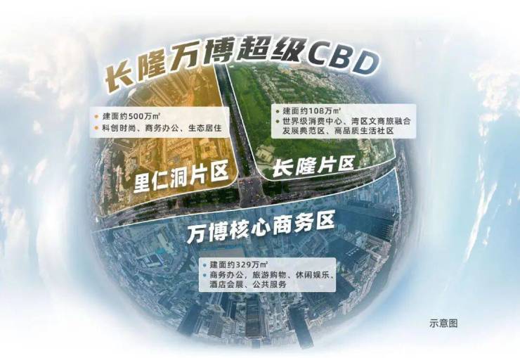 在2023年4月,番禺区政府宣布,长隆万博商务区正式扩容。由原来的1.5平方公里扩展至7.2平方公里,涵盖汉溪长隆、万博、里仁洞三大板块。