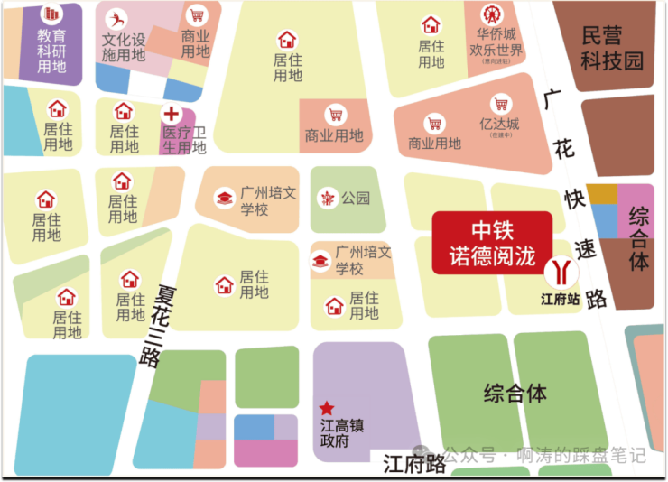 江高新城位于珠江新城、白云新城形成的城市中轴之上,占位四大枢纽的几何中芯,北承空港经济区、广州北站商务TBD东风,南邻白云站TOD动脉,西邻广州国际港,潜力庞大。
