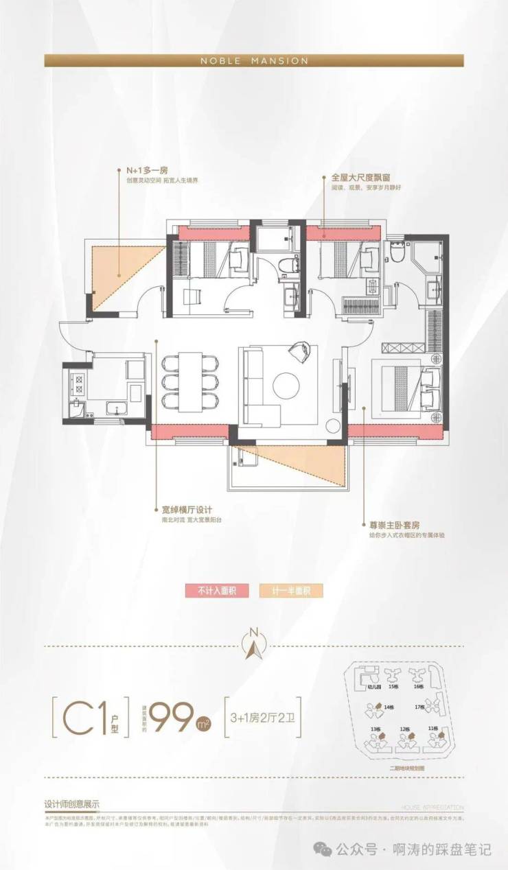 2梯4户、百米楼距、楼王C位、俯瞰6万平园林