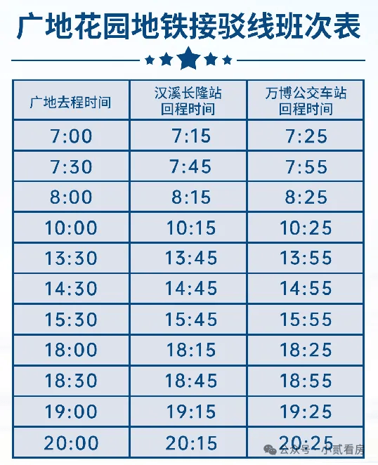 也有专线接驳地铁南村万博站(7分钟)和汉溪长隆站(10分钟),可乘坐地铁3-7-18号线。
