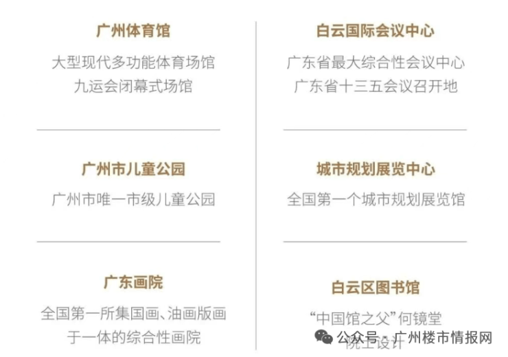 周边8大省一级学校环绕,包括省实验中学白云新城校区、培英中学及附属小学、广东外语外贸大学及附属小学、广园小学及中学、白云区民航学校等