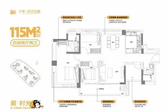 客餐厅一体化,南北通透,采光俱佳,360°无敌采光,主卧270°全景飘窗