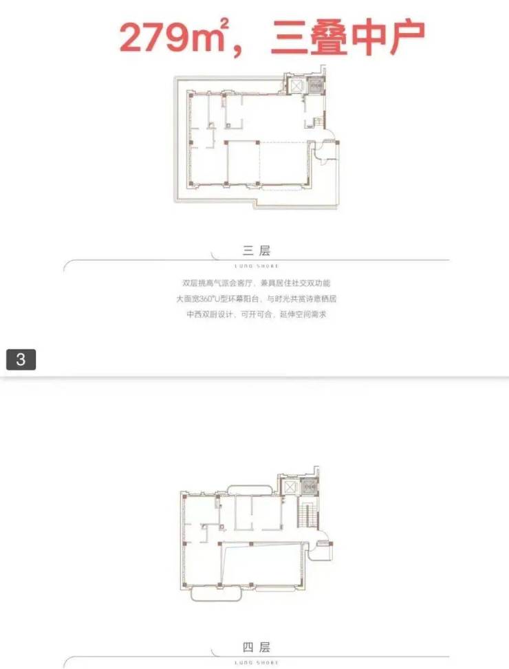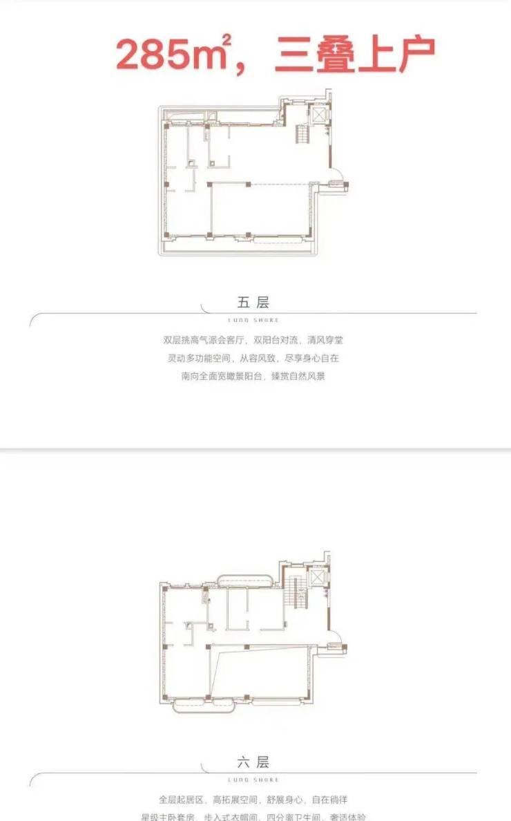 ⑥叠墅产品稀缺,同时是市面上唯一可售一线江景叠墅,户户三面采光,楼间距宽阔。