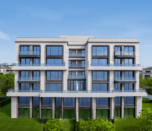 ●全幕墙弧形立面:传承之上再创新,采用干挂石材+铝板+玻璃搭配,现代典雅弧形立面,雕琢时间的款藏。