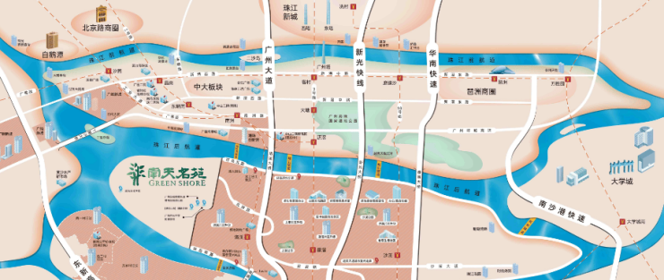 2、项目位于广州快速发展的黄金江岸线——珠江后航道高端豪宅居住带上;