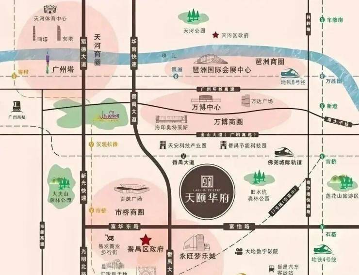天颐华府位于番禺广场板块,可快速到达珠江新城。