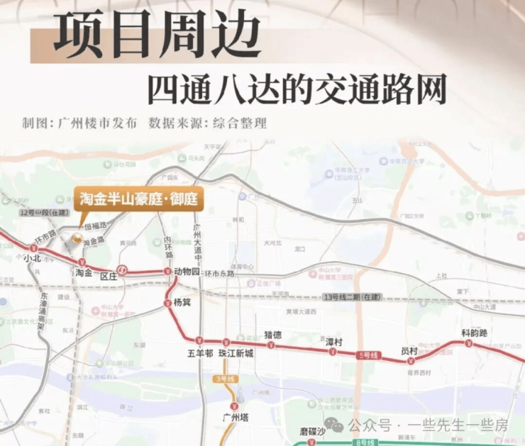 地铁近:距5号线淘金站约600米,5站到珠江新城(24分钟);在建12号线、13号线二期未来更便捷。