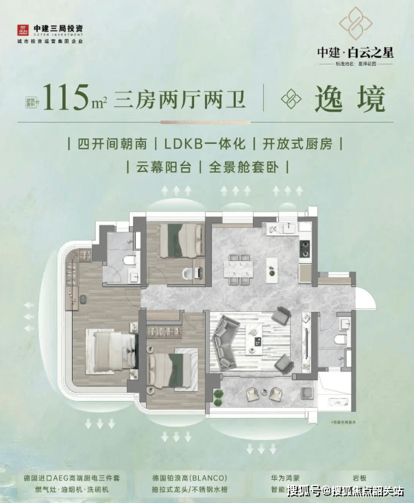 中建·白云之星不仅关注空间尺度,更注重生活品质的细节打磨。项目主力户型涵盖建面约115㎡三房至226㎡私梯大平层,均采用超100%使用率新规设计,层高达约3.1-3.3米,空间感与实用性兼得。