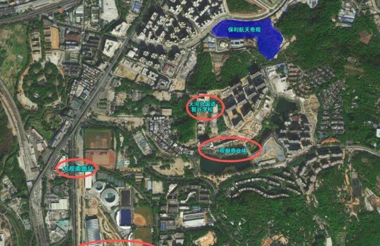 项目自身配建6班幼儿园,中小学由天河外国语智谷学校(已开学)统筹解决