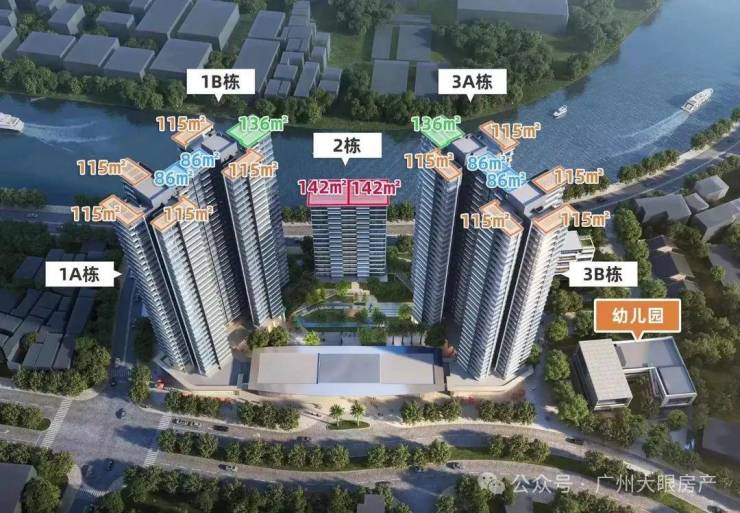 住宅部分,则由1A、1B、3A、3B等四栋31-32层的高层洋房(塔楼),和2、4号楼5-17层高的小高层(板楼)等6栋住宅楼组成。